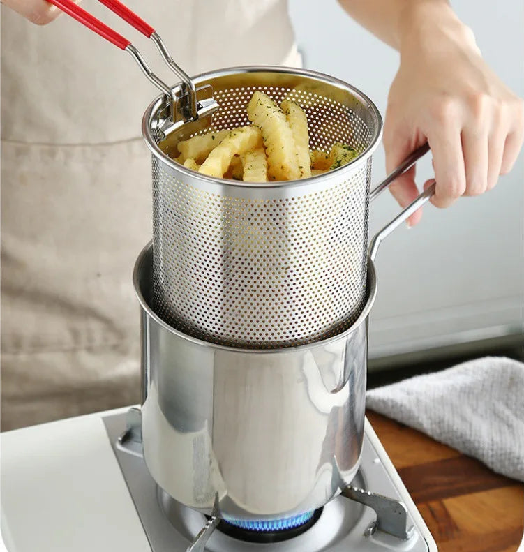ストレーナー付きのフライパンは、フライドポテト、チキンナゲット、イカリング、天ぷら、エビなどを揚げるのに最適です。