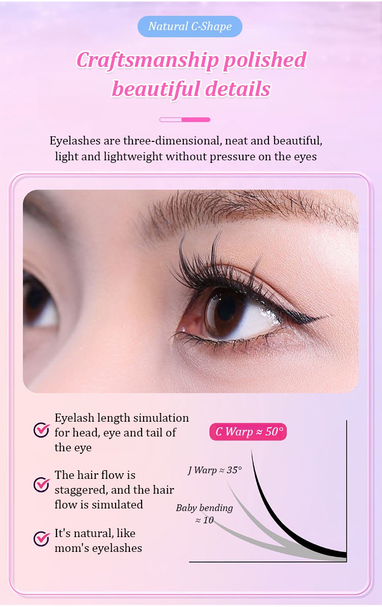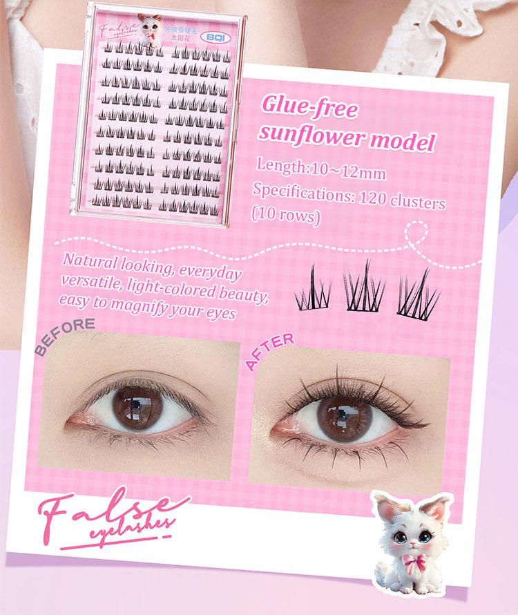 10 列の大容量で、接着剤不要で取り外し可能なつけまつげ - 使いやすいつけまつげで、あっという間に見た目を変身させましょう。