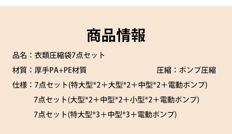7/9/11 ピース衣類圧縮バッグ