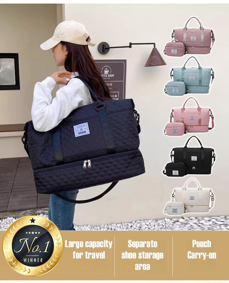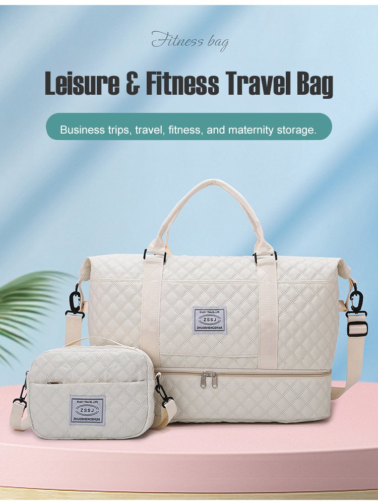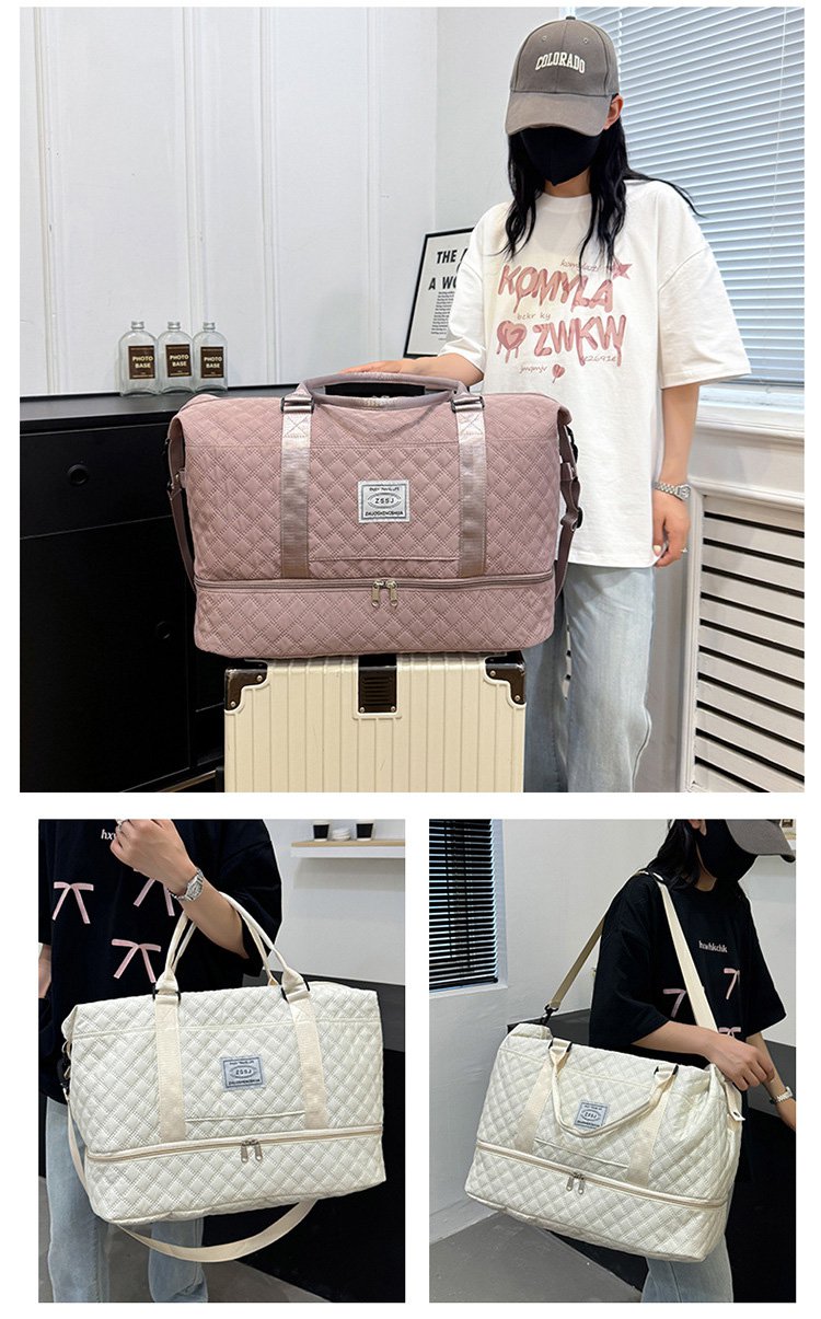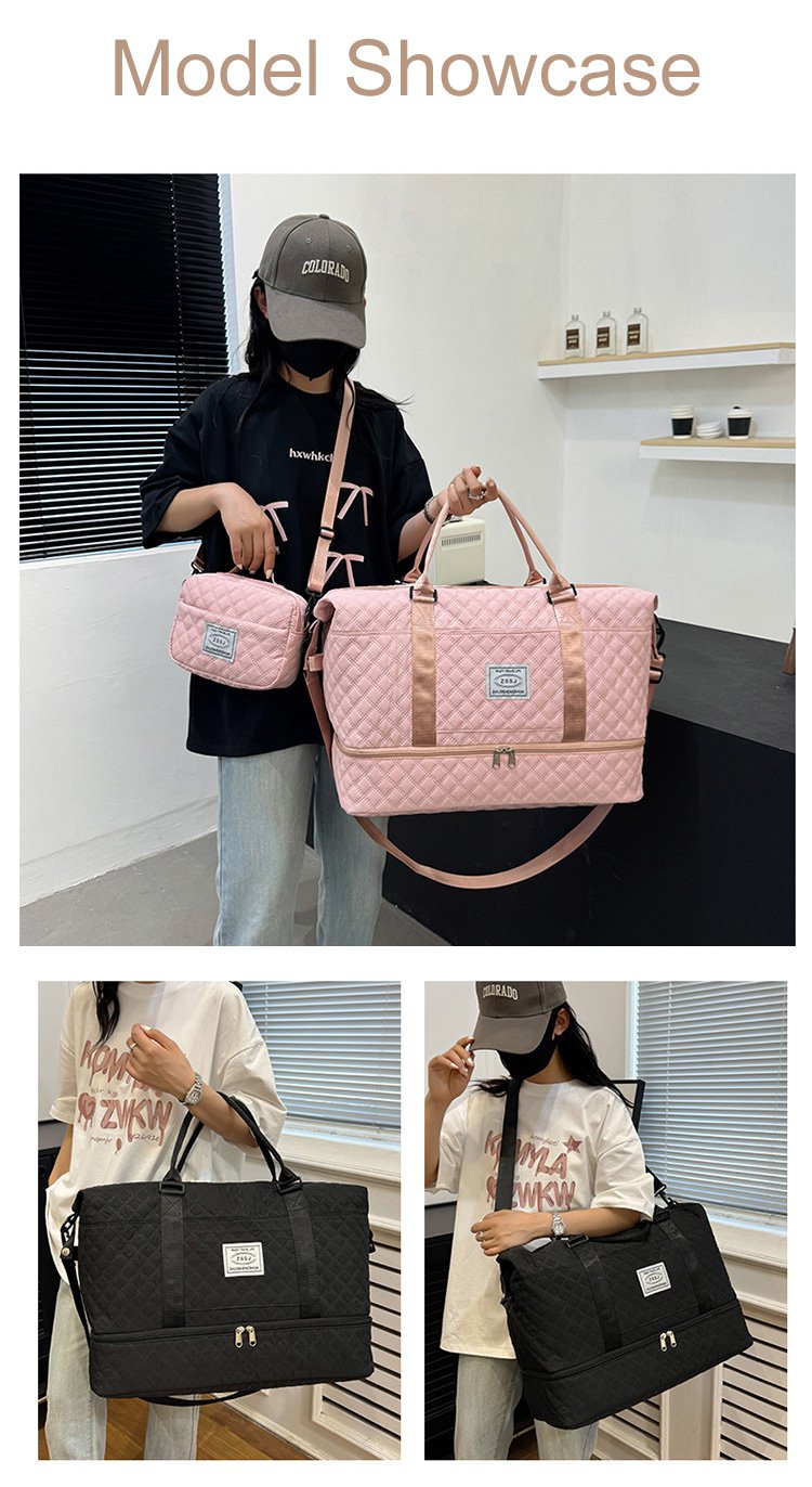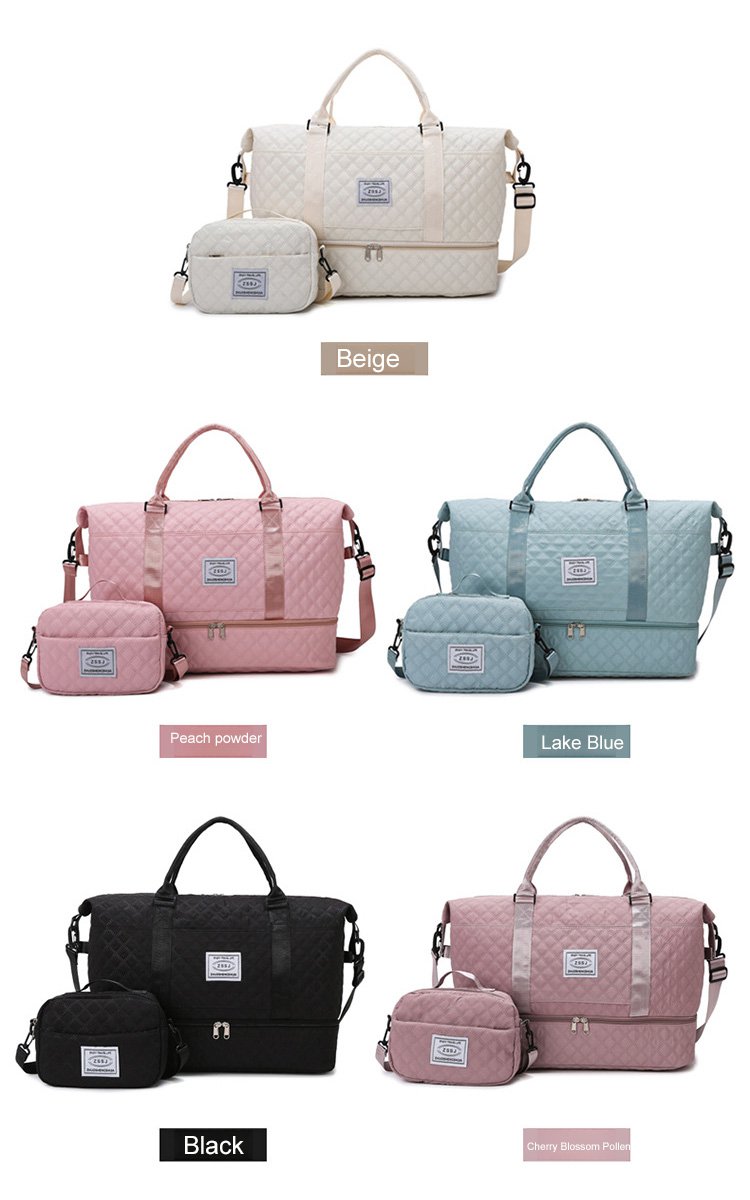 ダイヤモンドグリッド大容量トラベルバッグセット ウェットとドライを分けて収納可能