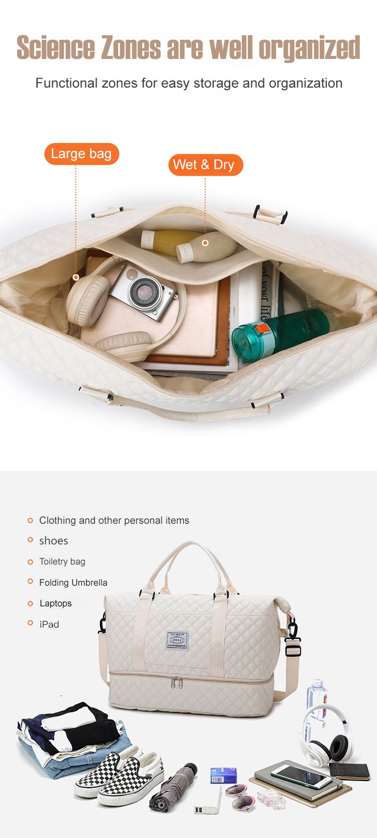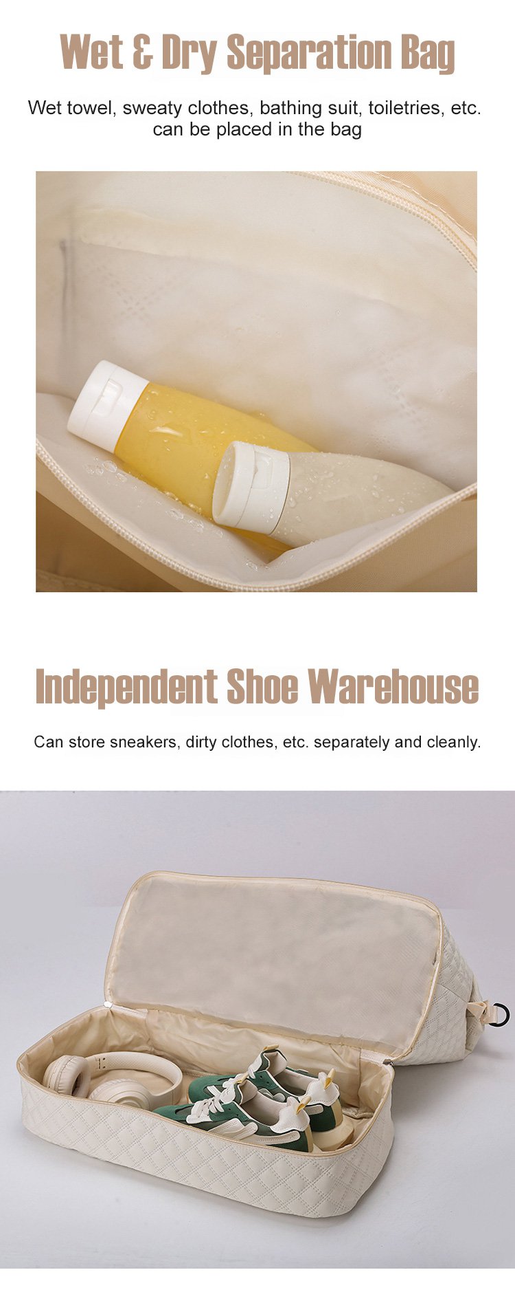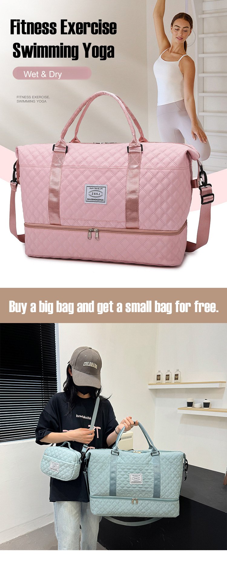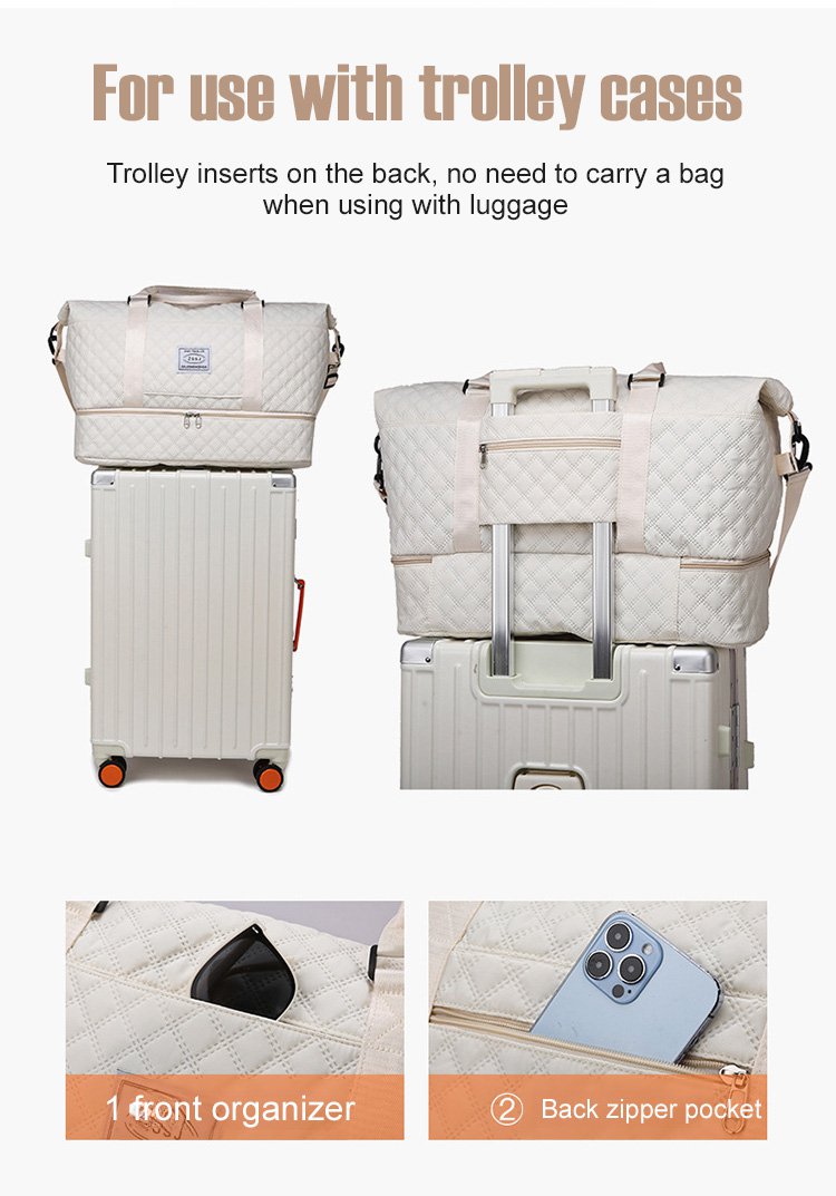 ダイヤモンドグリッド大容量トラベルバッグセット ウェットとドライを分けて収納可能