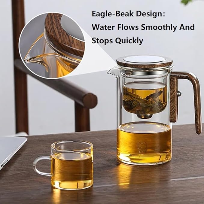 ティーポットの外側にある磁気スイッチを軽くタップすると、濾過機構が作動します。この動作により、淹れたお茶が葉から分離され、滑らかで透明な飲み物になります。